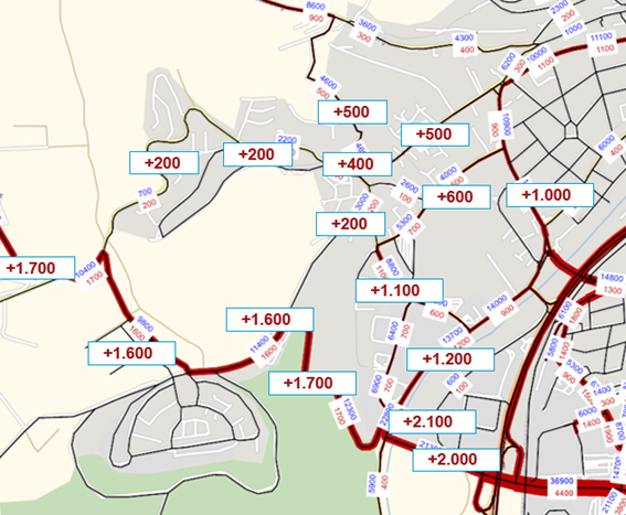 • Entwicklung und Bewertung geeigneter Maßnahmen zur verkehrlichen Machbarkeit und zur Begrenzung der Belastungen auf sensible Straßen anhand des städtischen Verkehrsmodells